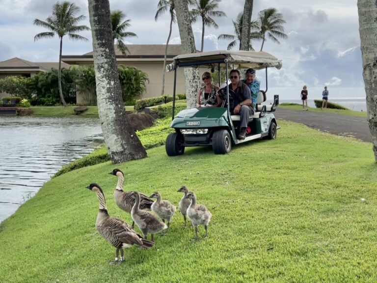 The tour offers a unique view dating back to the days of Chris Hemmeter, the original developer of the property. Alan expertly guides guests through the development of the property including the original lagoon islands usage, the original trails, and their intended use. It’s not uncommon to see all five of the endangered species of birds that live at Hōkūala as well as 15-20 other varieties during the tour. Because the grounds stretch from makai to mauka, there is often an opportunity to see Hawaiian monk seals, green sea turtles, and the pueo–Hawaiian short-eared owl–as well.